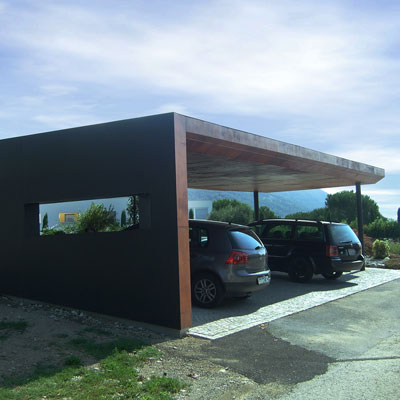 L’ala nuova occupata dall’ingresso, uno studio e la cucina, è caratterizzata da una facciata interamente vetrata e rivestita con lame in legno teak, il cui disegno segue l’andamento solare per assicurare una corretta illuminazione interna.