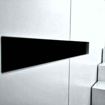 La sua struttura portante in beton a vista (e isolazione interna) entra in antitesi con la smaterializzazione del fronte principale, completamente vetrato. Ogni apertura è stata studiata per creare un forte dialogo con l’esterno: una finestra a nastro offre degli scorci prospettici sui Denti della Vecchia; una finestra quadro nella day area riporta il paesaggio circostante alla dimensione abitativa; e lucernario di 5 mt sul tetto diffonde la luce zenitale sul vano scale.